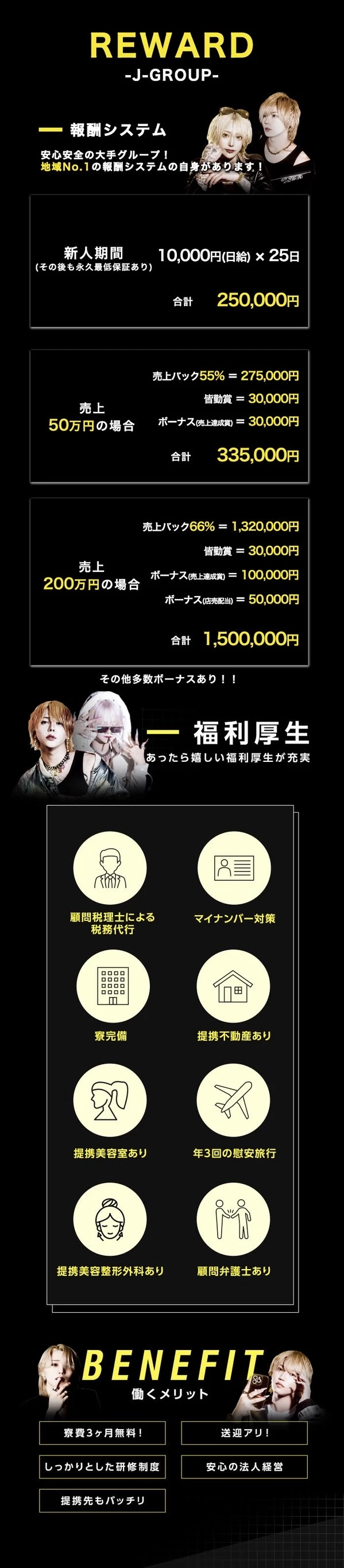 ※名刺、ヘアメイク代初月無料! - 待遇・福利厚生