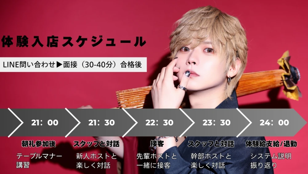 - 応募資格 A. ホスト 18歳以上 ※高校生不可 B. 店舗運営スタッフ 18歳以上 ※高校生不可