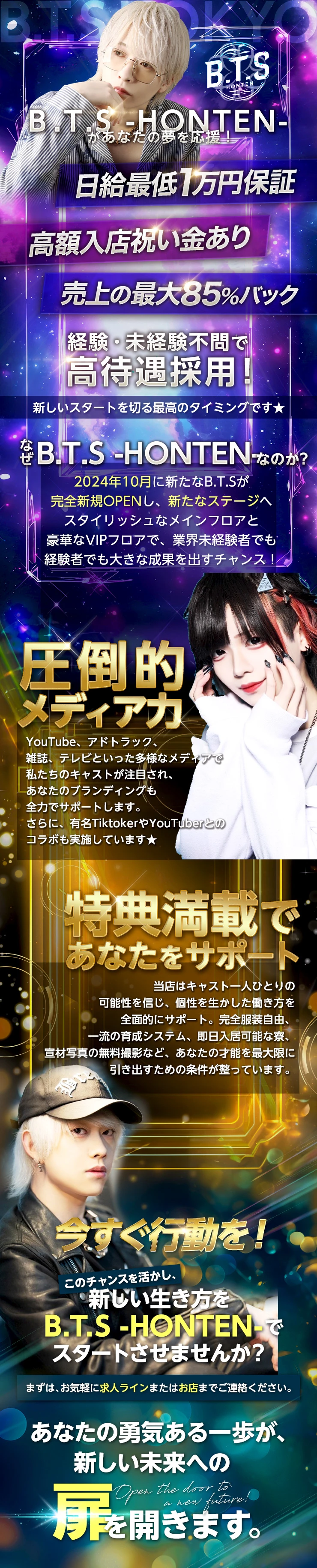 B.T.S -HONTEN-(ビーティーエスホンテン) - 歌舞伎町/ホストクラブ求人情報